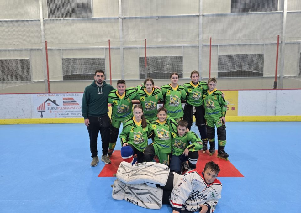 Najmlađi Karlovčani odigrali su dvije utakmice. U prvom susretu protiv ekipe HK Dolenjske Topliceprikazali su odličnu igru i slavili uvjerljivim rezultatom 6:0. Međutim, u drugoj utakmici snage su odmjerili s ekipom HK Dinamiti Horjul, koja se pokazala prejakim protivnikom. Dinamiti su bili dominantni i slavili 8:0. Unatoč porazu u drugom susretu, ekipa U12 iz Horjula se vraća s vrijedna 3 boda. Stariji igrači, kategorija U14, imali su zahtjevan raspored s čak tri utakmice. U prvom dvoboju protiv HK Dolenjske Toplice upisali su poraz rezultatom 1:4. U drugoj utakmici susreli su se s ekipom HK Prevoje. Nakon vrlo izjednačene i napete igre, pobjedu ipak odnosi Prevoje minimalnim rezultatom 1:0. Posljednja utakmica ponovno je bila protiv ekipe HK Dinamiti Horjul. U tom su susretu Dinamiti bili uvjerljivo bolji te pobijedili 9:0. Iako ekipa U14 ovaj put nije uspjela upisati pobjedu, mladi Karlovčani pokazali su dobru igru, borbenost i čvrst karakter, što ulijeva optimizam za nastavak prvenstva. Iduće kolo prvenstva odigrat će se za kategorije U10 i U16, ovu subotu 6.12., u Horjulu.